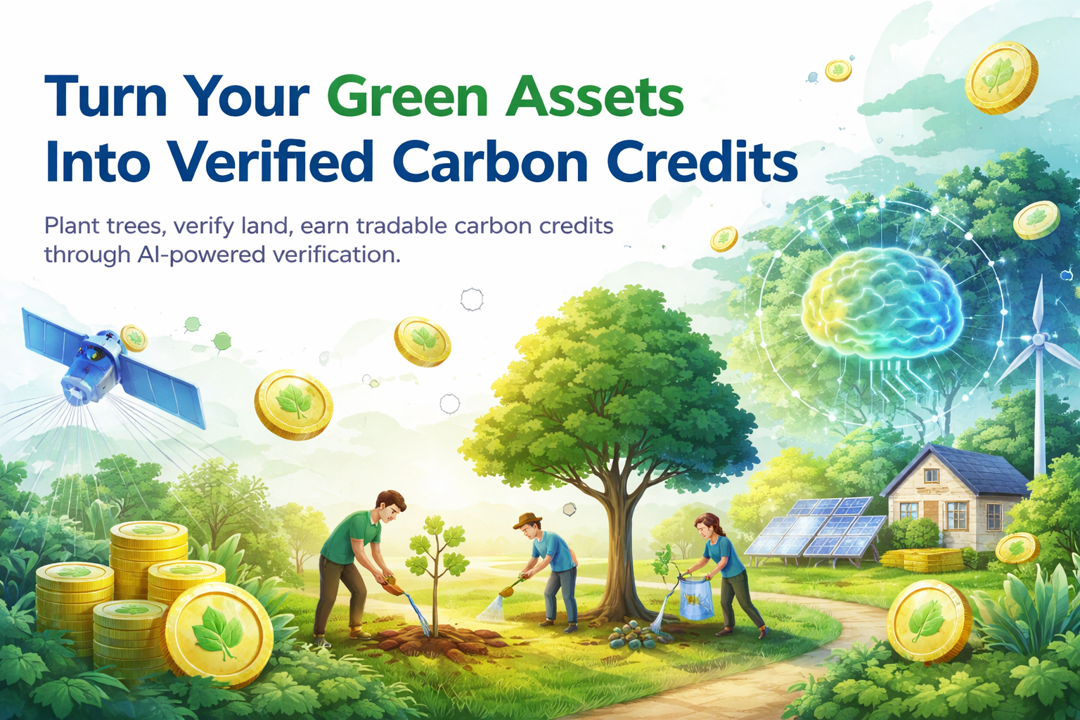 Plant trees, verify land, earn tradable carbon credits through AI-powered verification. Democratizing the carbon market for individuals and communities.